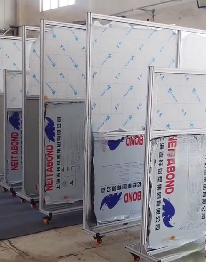 防護(hù)屏推拉式:屏風(fēng)三面折邊打孔,*** 上面每40CM打一個(gè)金屬吊環(huán)孔,免費(fèi)提供尼龍?jiān)鷰?。將打眼方與橫梁用扎帶或鋼絲繩連接或穿起來,使防護(hù)屏推拉方可佳。